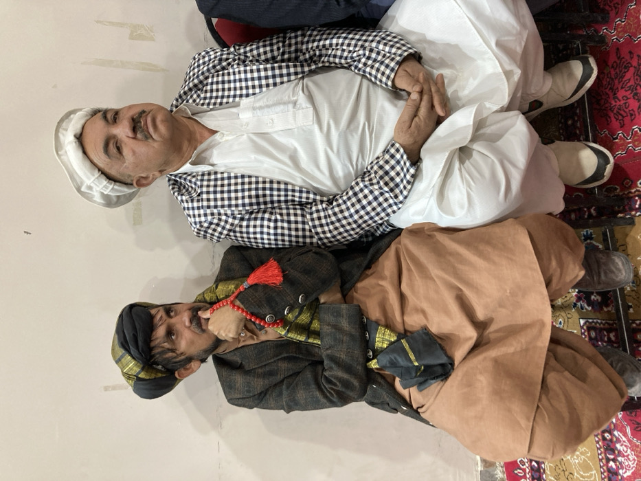 The image depicts two adult males seated indoors in Quetta City Tehsil, Pakistan