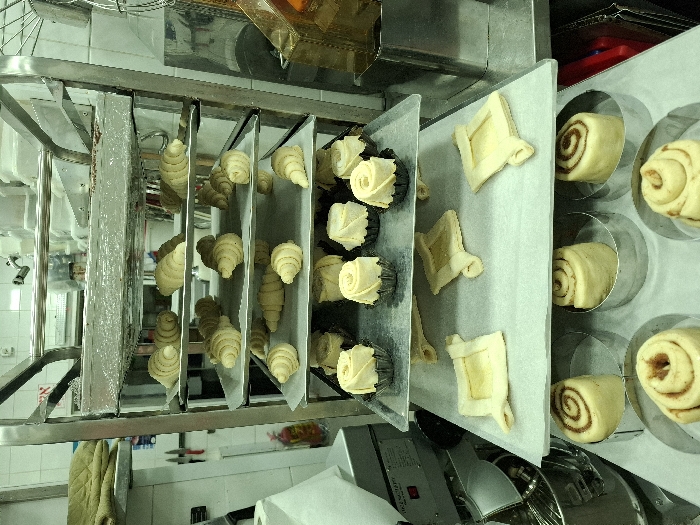 - "The image depicts a stainless steel rolling rack laden with various unbaked pastry items, situated within a commercial kitchen in Bnei Dror, Israel" by FM-B2gbf2, licensed under CC BY 4.0