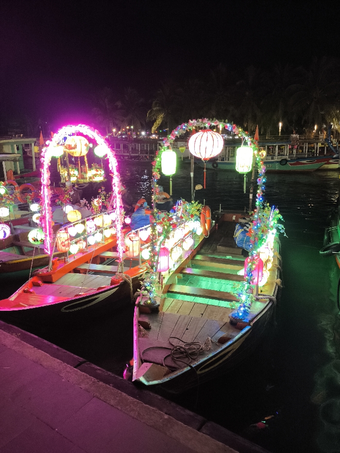 - "The image depicts two ornately decorated wooden boats docked side-by-side at night in Hội An Ward, Vietnam" by FM-ETbE83, licensed under CC BY 4.0