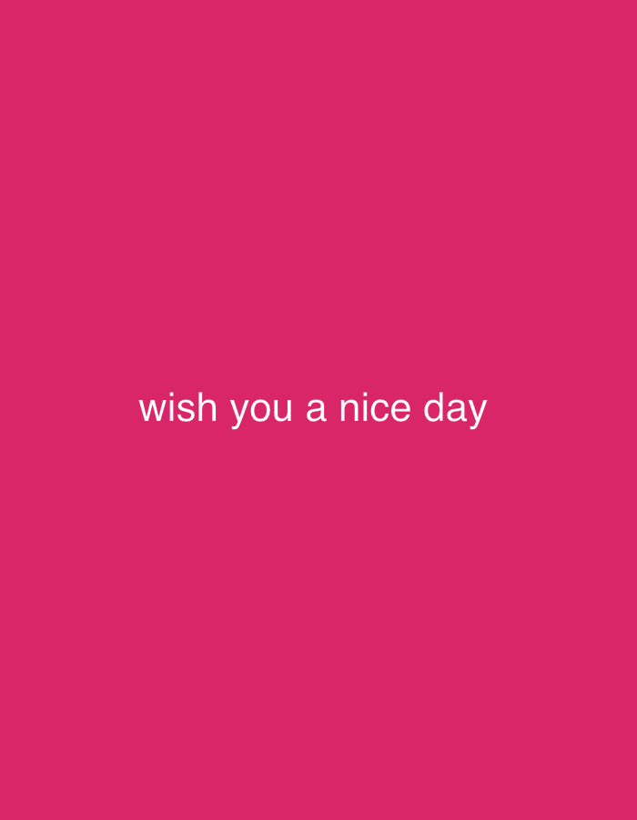 The image displays a solid magenta background. Centered horizontally and vertically on this background is the phrase "wish you a nice day" rendered in white, sans-serif text. No other subjects, objects, people, actions, interactions, or environmental details are present or discernible in the image. The image does not depict any identifiable location within the city of At-Tall, Syria, or any other specific geographic area.