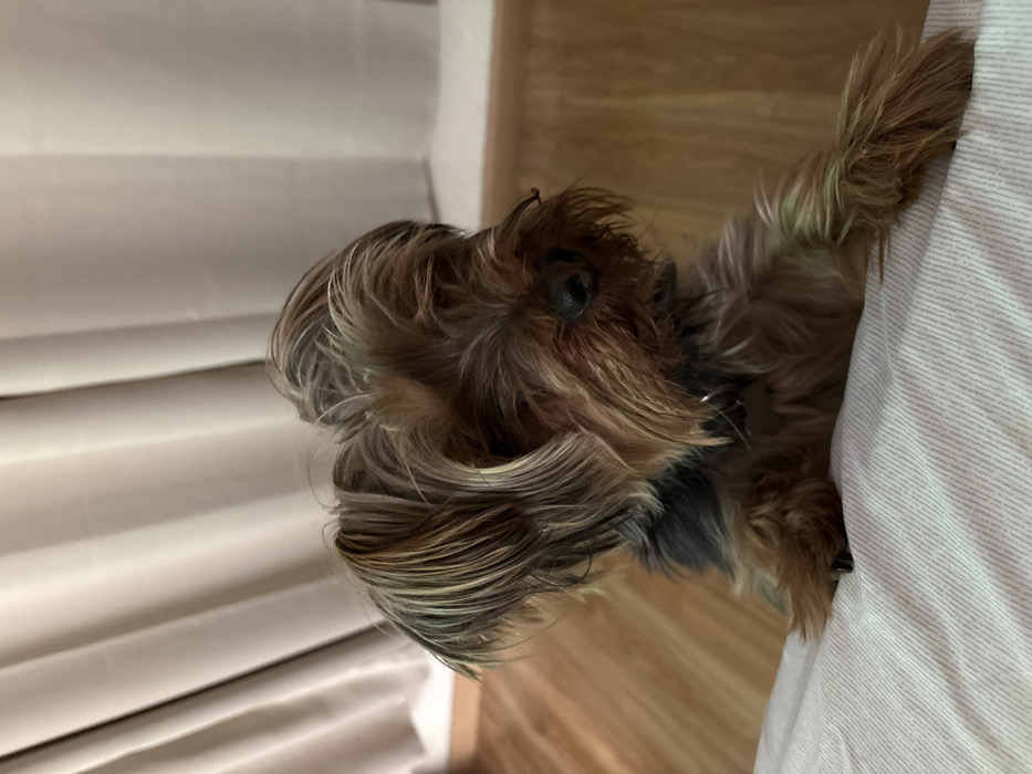 - "A small, fluffy brown dog with long hair rests its body against a light pink pillow" by FM-ZjnhV2, licensed under CC BY 4.0