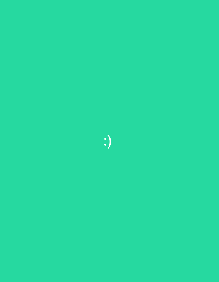 The image displays a white `:)` emoticon centered on a solid medium green background