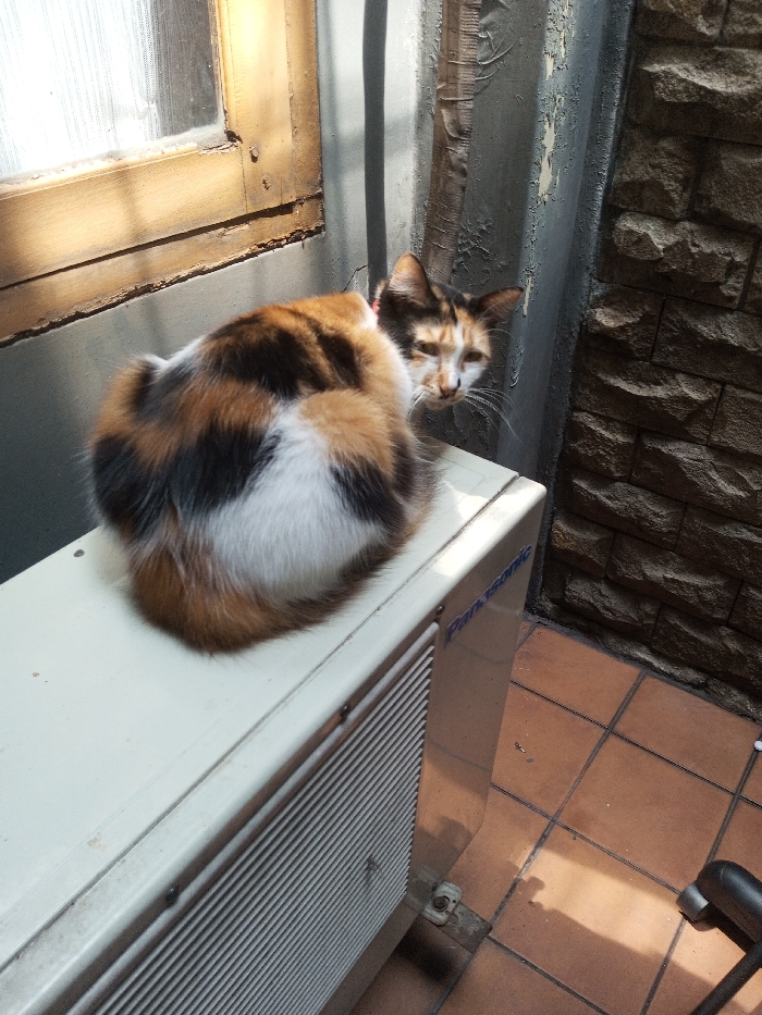 - "A calico cat sits curled up on top of a white Panasonic air conditioning unit" by FM-4YnJo2, licensed under CC BY 4.0