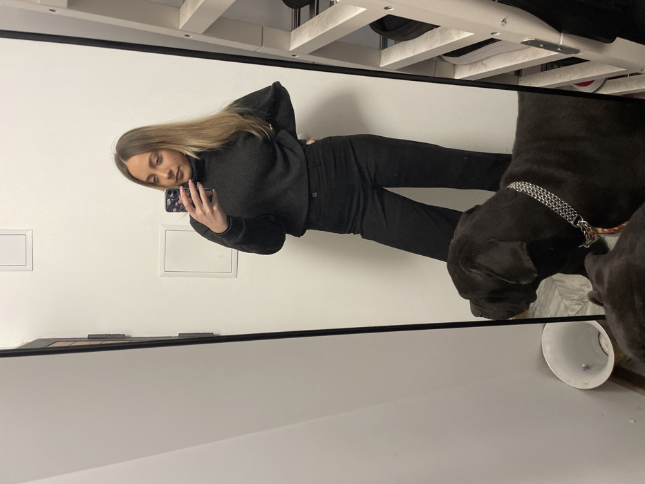 - "A full-length mirror selfie captures a female subject and a large dog in an indoor residential setting in Sofia, Bulgaria" by FM-db71J3, licensed under CC BY 4.0