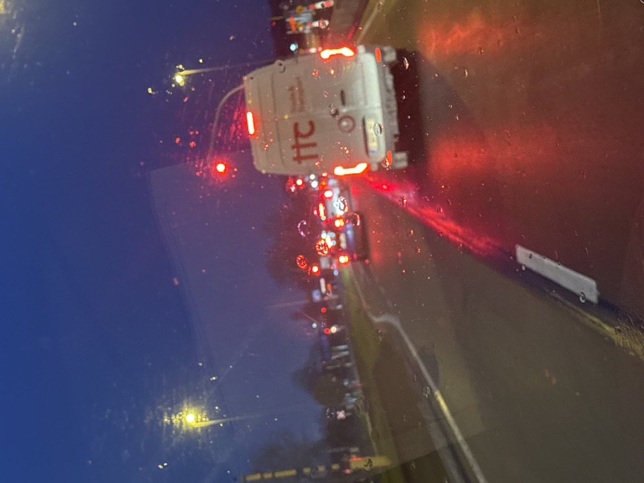 - "The image depicts a nighttime or dusk scene from the interior of a vehicle, looking forward through a wet windshield, characterized by numerous water droplets and streaks" by FM-OzukK2, licensed under CC BY 4.0