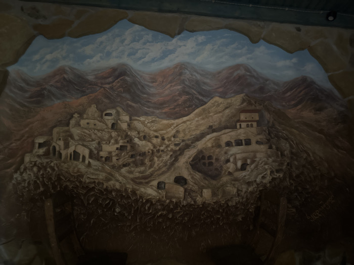 - "This image presents a three-dimensional relief mural depicting an ancient or historic cave-city settlement, framed by an irregular, organic, rock-like structure in shades of tan and brown" by FM-EU4xB3, licensed under CC BY 4.0