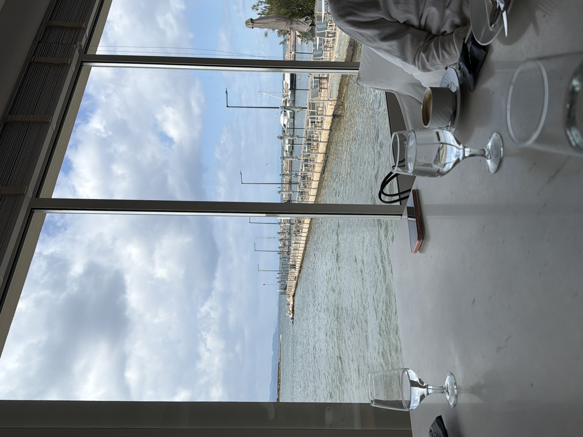 - "The image presents an interior view from a restaurant or cafe, looking out through large, multi-pane windows onto a marina located in Glifada, Greece" by FM-B0rPs2, licensed under CC BY 4.0