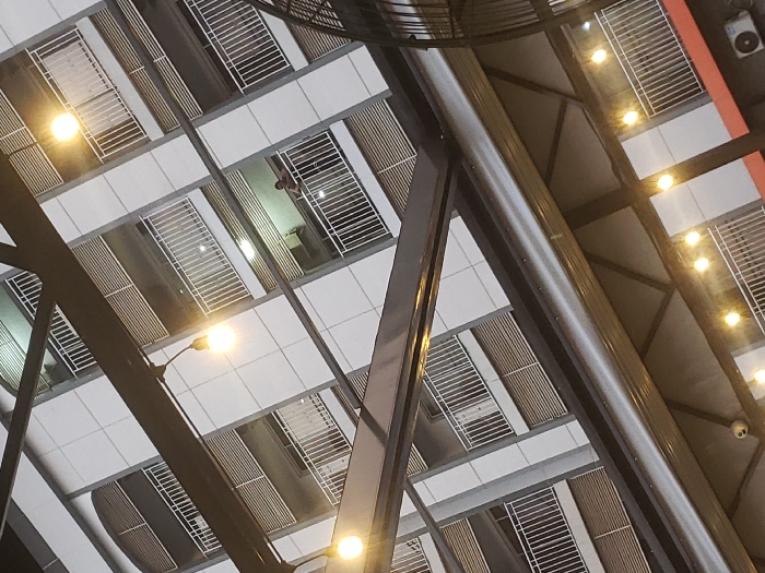 - "A diagonally-oriented image depicts an upward view of a multi-story building in Asaba, Nigeria" by FM-vXzHq2, licensed under CC BY 4.0