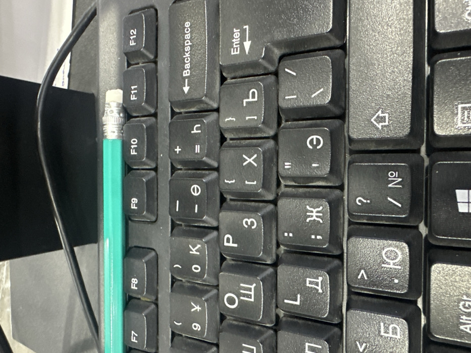 - "A close-up, slightly downward-angled photograph captures a black computer keyboard displaying a dual-language layout with both Latin (QWERTY) and Cyrillic characters" by FM-RpHs22, licensed under CC BY 4.0