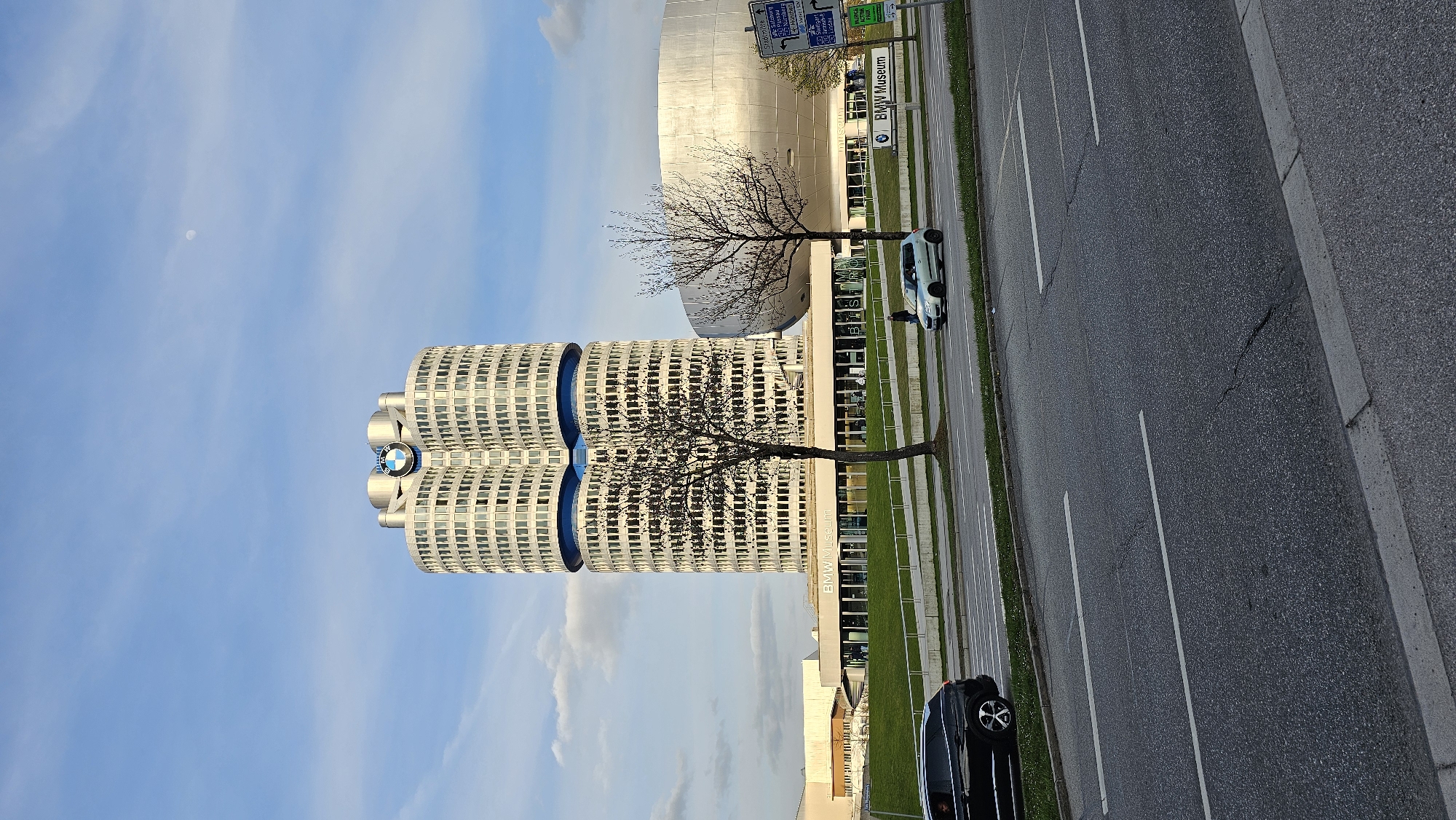 The image depicts the BMW headquarters in Munich, Germany