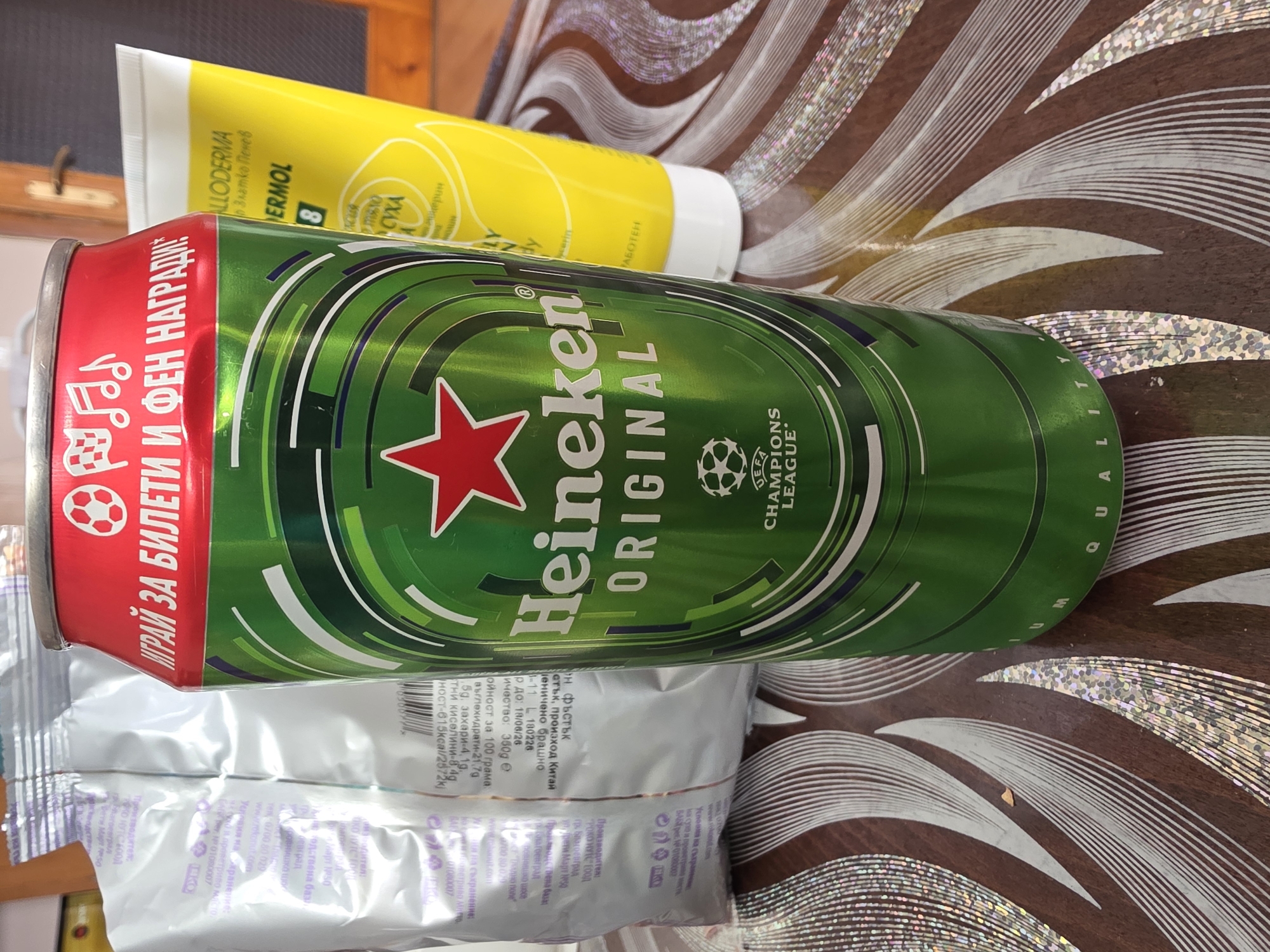 - "A can of Heineken beer with a red promotional top is visible, with Bulgarian text that translates to "Play for tickets and fan awards!"" by FM-6fPlE2, licensed under CC BY 4.0