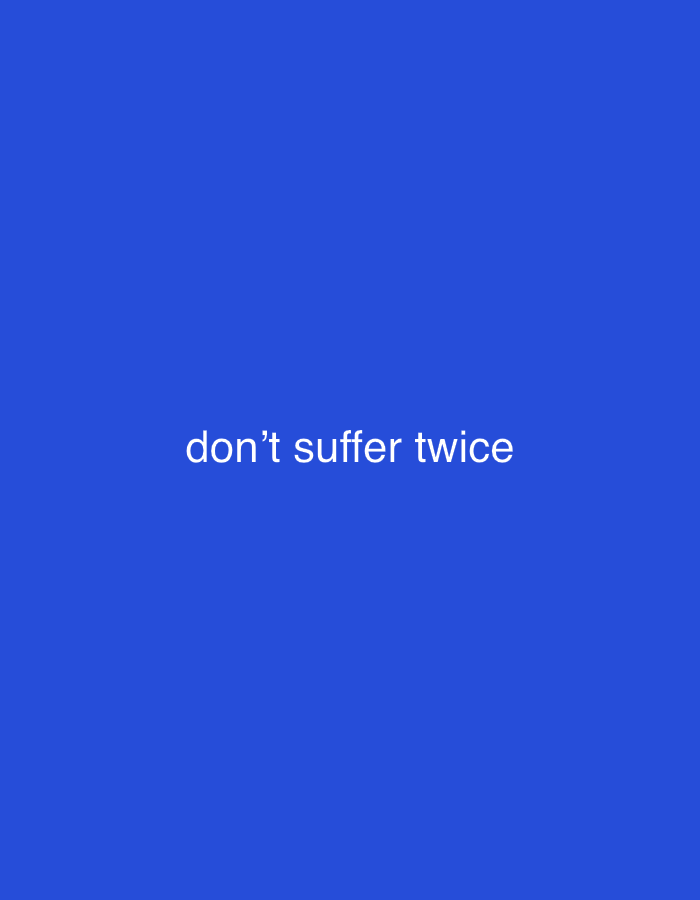 - "A blue background presents the phrase "don't suffer twice" in white text" by FM-S0Unw2, licensed under CC BY 4.0
