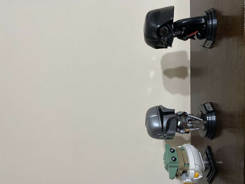 - "Located in Botevgrad, Bulgaria, the image displays three static Star Wars themed collectible figures on a dark brown wooden surface against a plain, light beige wall" by FM-orEo22, licensed under CC BY 4.0