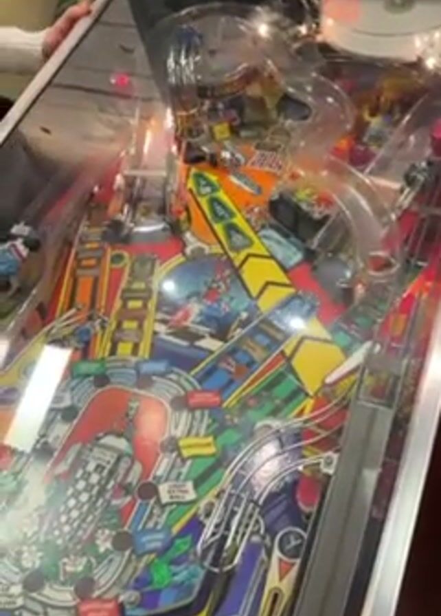 A video shows someone playing a pinball machine