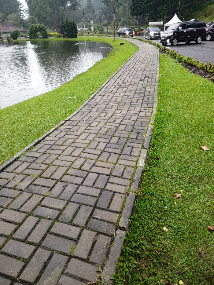 - "A brick pathway winds alongside a grassy bank and a body of water" by FM-PCedf1, licensed under CC BY 4.0