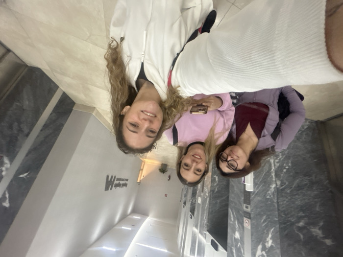 - "Three young women are posing for a selfie in what appears to be an elevator or building lobby" by FM-gAfVJ2, licensed under CC BY 4.0