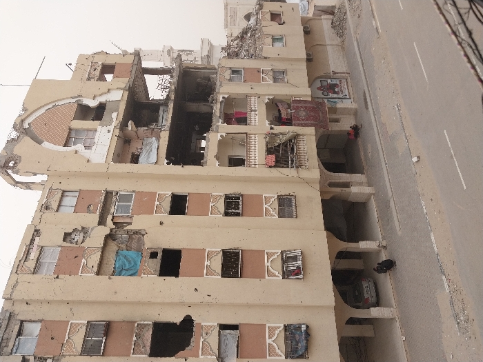 - "The image displays a six-story residential building in Khan Yunis, Palestinian Territory, exhibiting extensive structural damage under an overcast sky" by FM-2XCCl2, licensed under CC BY 4.0