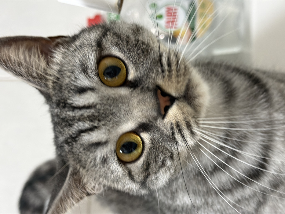 - "A close-up, eye-level portrait captures a domestic cat, likely a silver tabby, facing directly towards the viewer in Yuzhny, Russia" by FM-t12ef2, licensed under CC BY 4.0