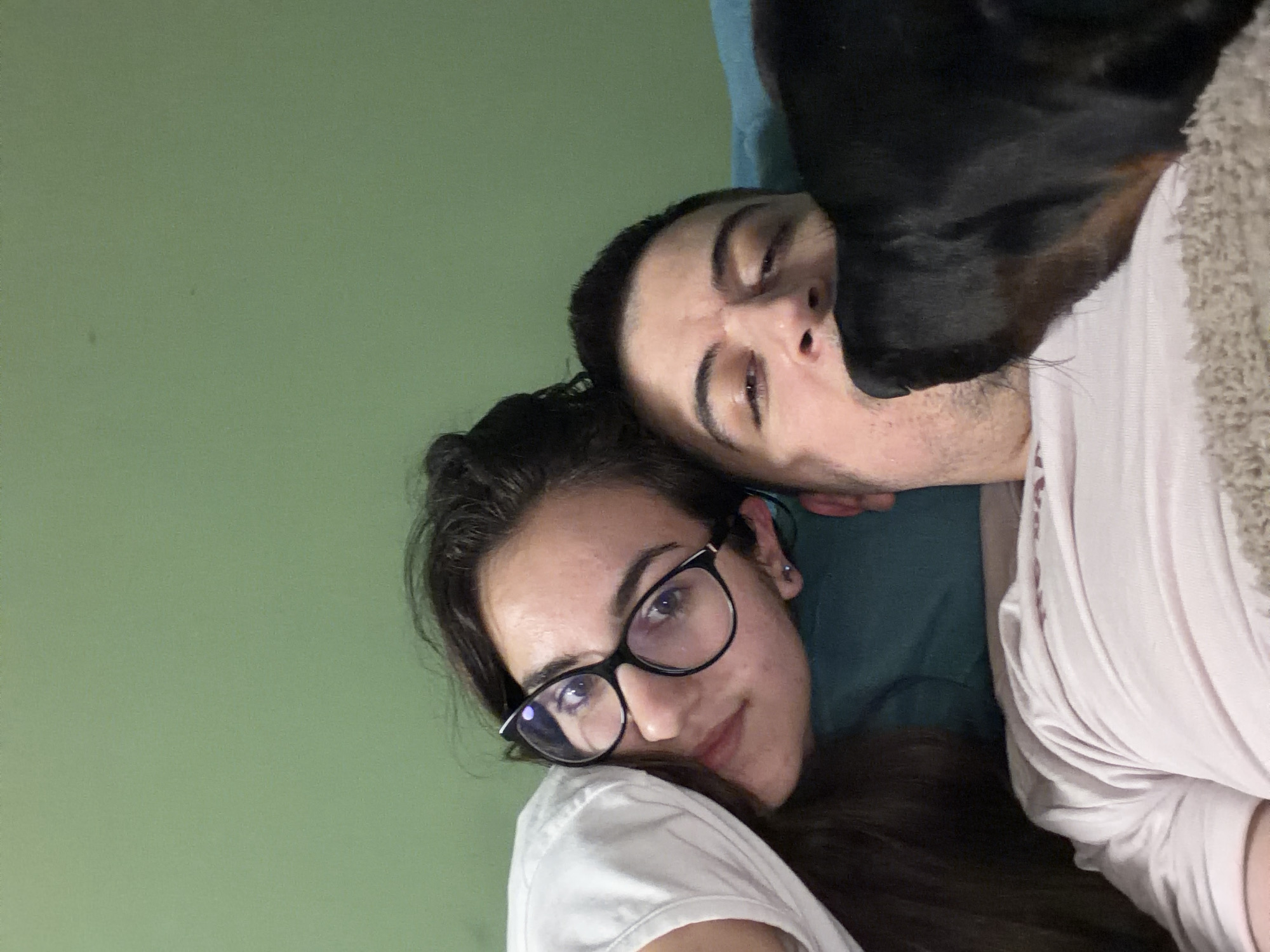 - "The image depicts two people and a dog lying down, possibly indoors" by FM-EpCxW2, licensed under CC BY 4.0