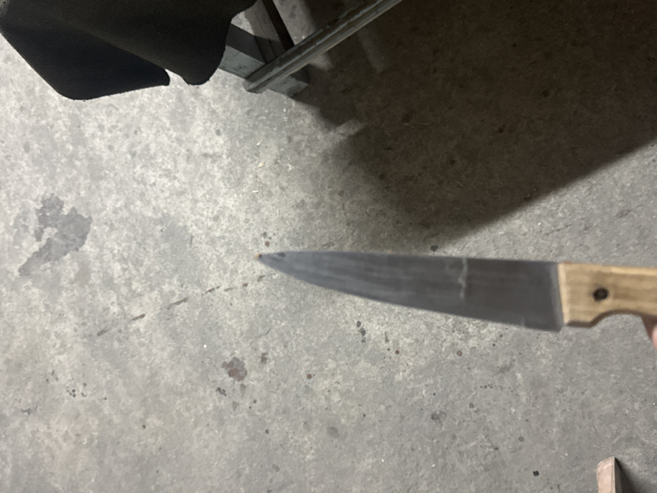 - "An overhead view depicts a hand holding a knife with a metallic blade and light-colored wooden handle over a concrete floor in the city of At-Tall, Syria" by FM-Vg5R62, licensed under CC BY 4.0