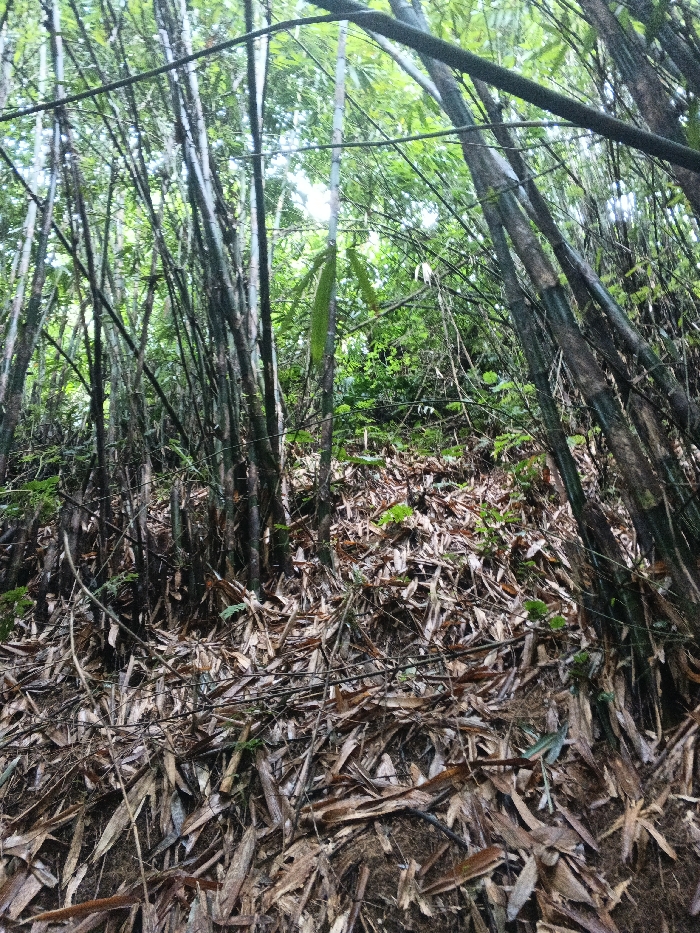 The image displays a dense bamboo forest floor in Baglung, Nepal, captured from a low vantage point