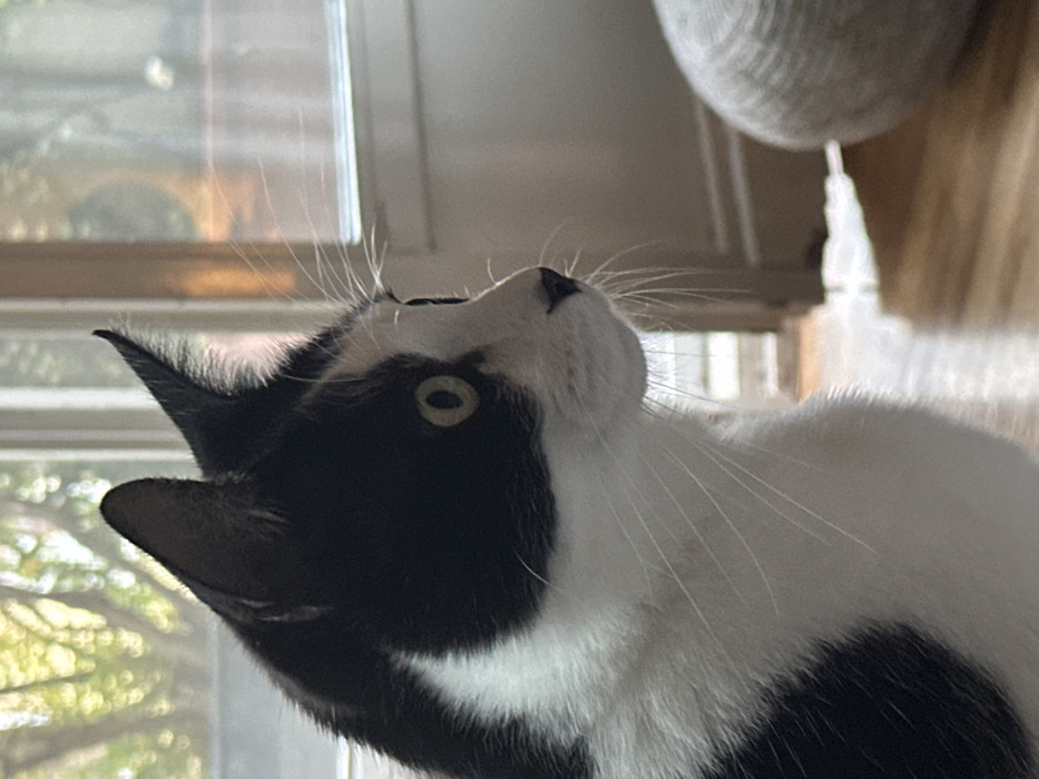 - "A black and white tuxedo cat is depicted in a close-up, profile view, facing right" by FM-7BYDW2, licensed under CC BY 4.0