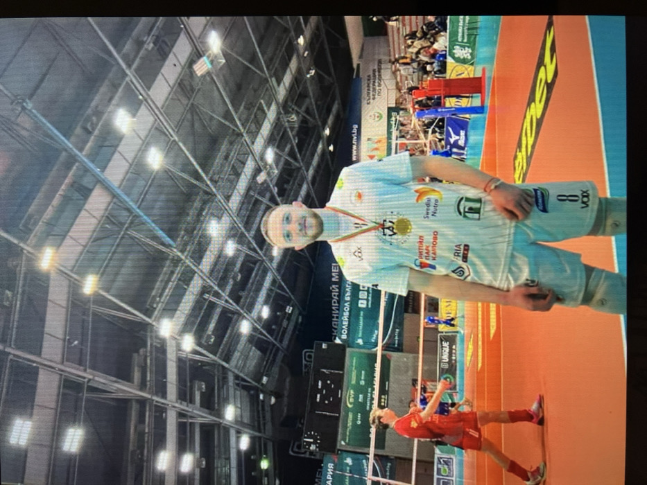 An indoor sports arena, identified as a volleyball venue in Plovdiv, Bulgaria, is depicted