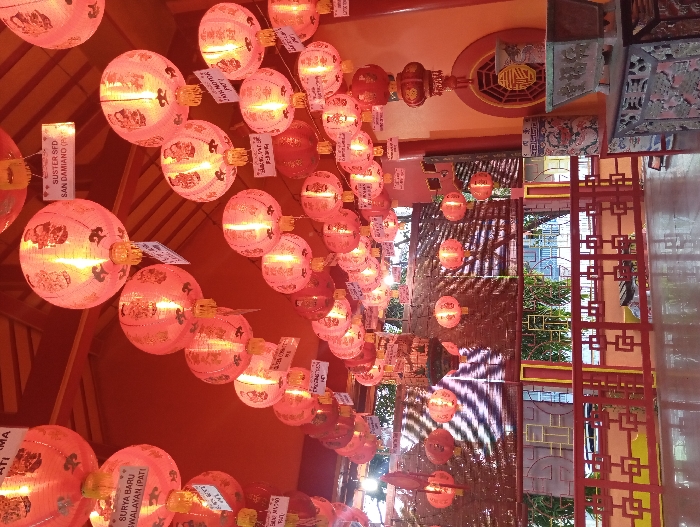 - "The image depicts the interior of a Chinese-style structure in Kecamatan Pati, Indonesia, likely a temple or hall, adorned with numerous illuminated red and gold lanterns" by FM-McGNq2, licensed under CC BY 4.0