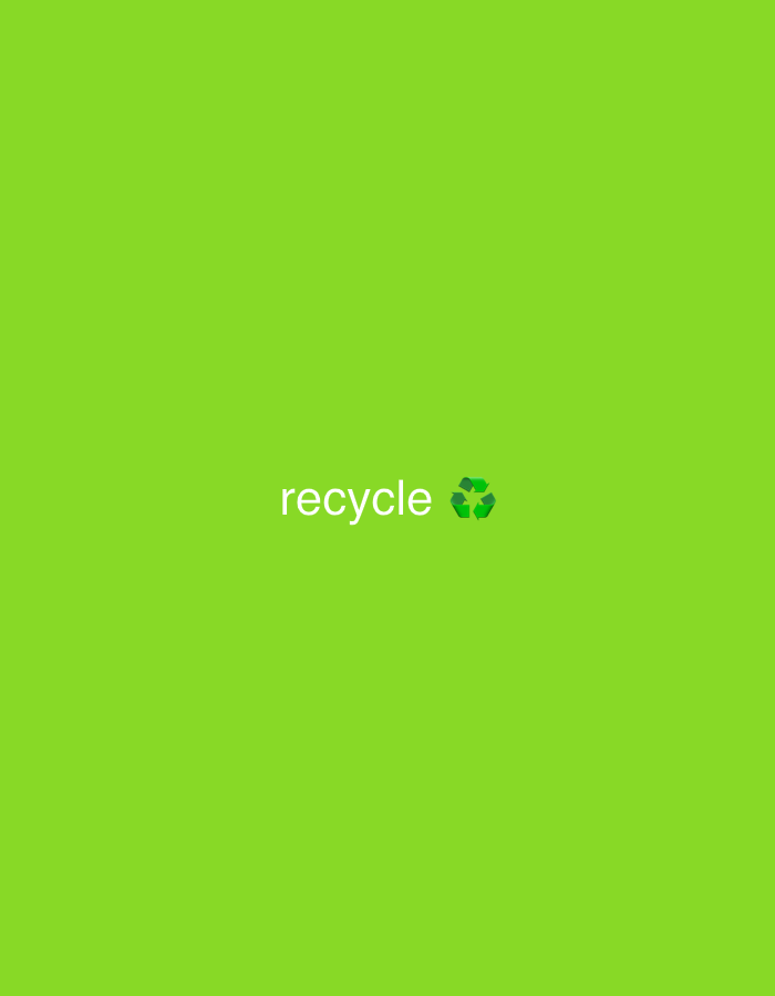 The image displays a solid lime green background. Centered horizontally, the word "recycle" is present in white text, immediately followed to its right by a smaller, three-dimensional green recycling symbol. No people, additional subjects, specific objects beyond the text and symbol, actions, or interactions are depicted. The environment is an abstract color field. The visual content provides no information to determine a specific location within Mexico City, Mexico, or any physical environment.