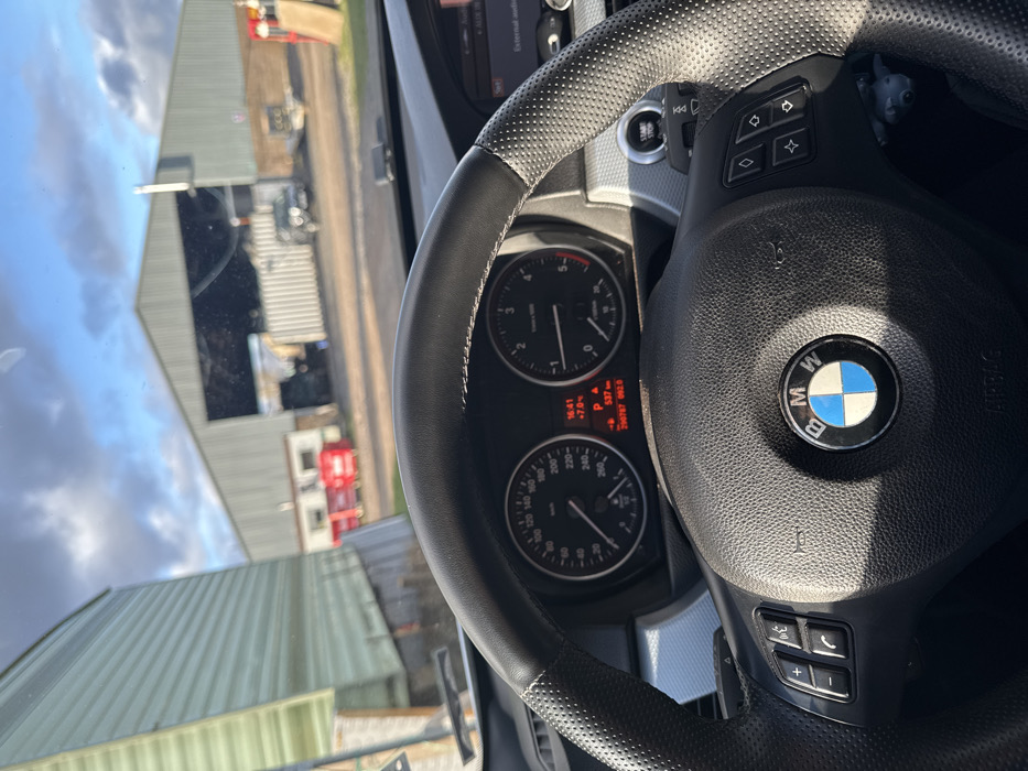 - "The image depicts the interior of a BMW vehicle, specifically the steering wheel and instrument cluster, from the driver's perspective, looking out onto an industrial or agricultural yard in Fowlis Easter, United Kingdom" by FM-aaYws2, licensed under CC BY 4.0