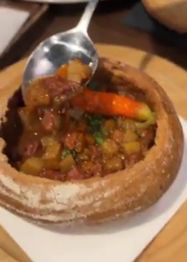 - "A close-up video shows a bread bowl filled with a stew-like dish" by FM-0RDsi1, licensed under CC BY 4.0