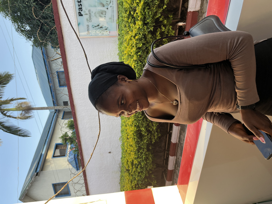 A female subject, appearing to be a young adult with dark skin, is depicted outdoors in Bar Jirgi Summa, Nigeria