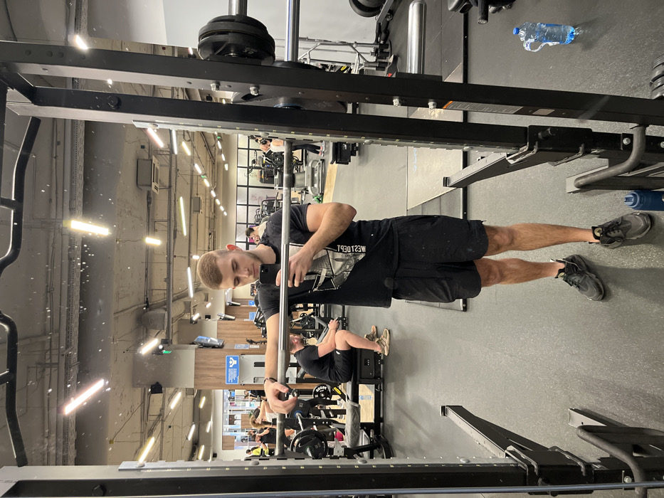 - "A young adult male, dressed in a black graphic t-shirt and black athletic shorts, stands in a modern gym, taking a selfie reflected in a large mirror" by FM-ETEXP2, licensed under CC BY 4.0