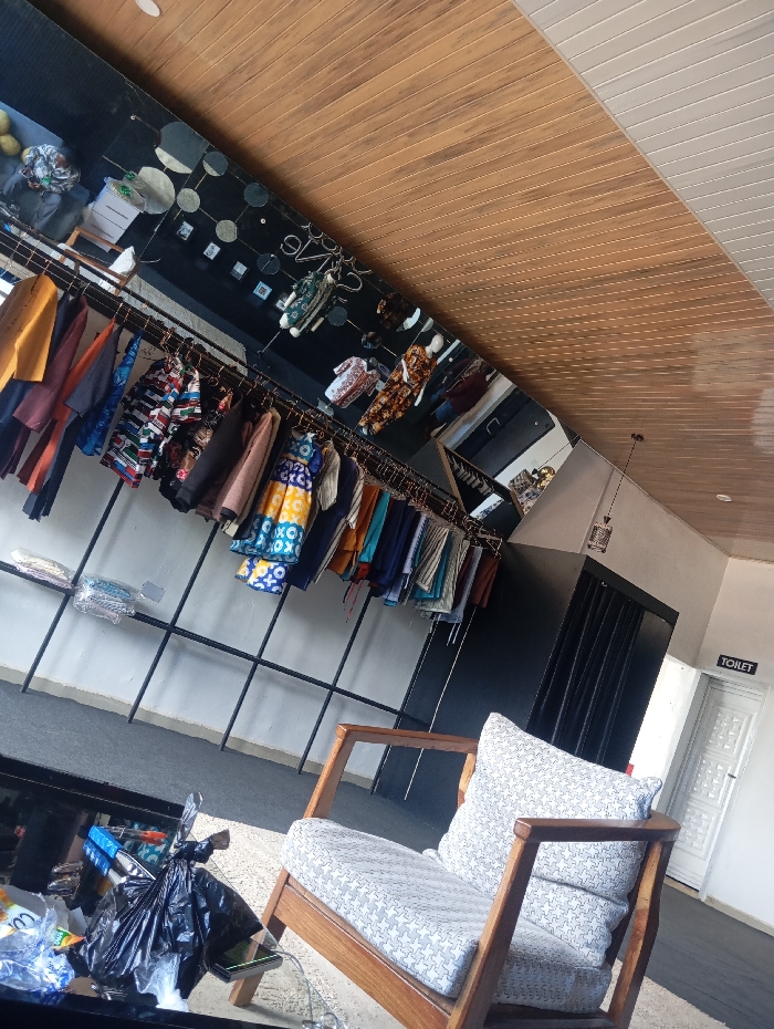 This image depicts the interior of a retail establishment, likely a clothing boutique, located in Gura Top, Nigeria