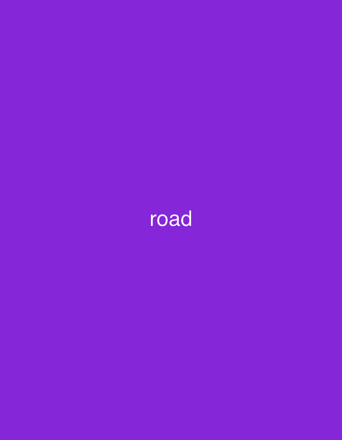 The image displays a solid, uniform purple background. Centered horizontally on this background is the word "road" rendered in white sans-serif text. No specific geographical location, including any area within the city of Seclin, France, is depicted. The scene contains no individuals, physical objects, discernible actions, interactions, or environmental features beyond the color field and text.