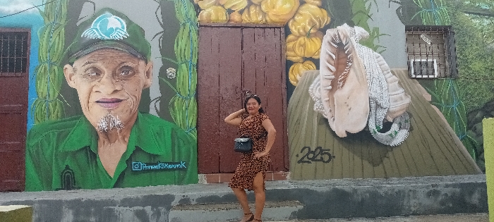 - "A woman in a patterned dress poses on steps in front of a mural" by FM-LkkdS2, licensed under CC BY 4.0