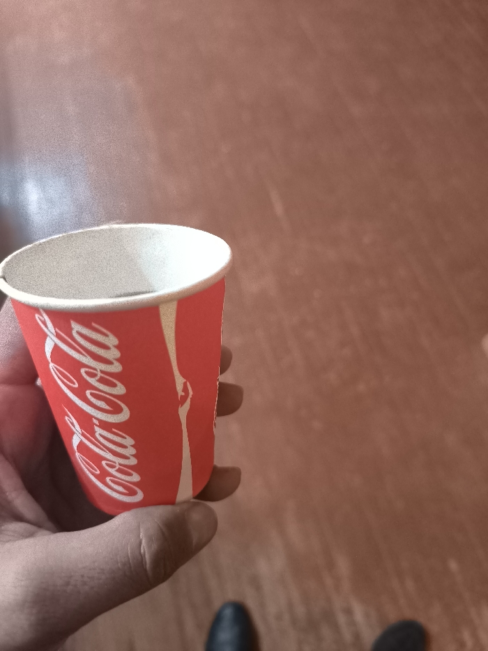 - "The image depicts a close-up view of a human hand holding a red and white paper cup, branded with "Coca-Cola" in white script" by FM-icMD83, licensed under CC BY 4.0