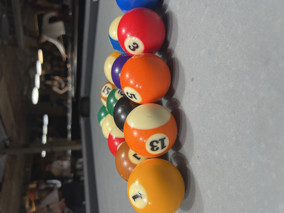 - "The image depicts a close-up, low-angle view of a set of billiard balls racked on a light grey felt pool table, presumably in a billiards hall in Sofia, Bulgaria" by FM-grFFI2, licensed under CC BY 4.0