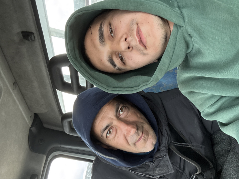 Two males are seated inside a vehicle, positioned side-by-side, in the city of Dibich, Bulgaria