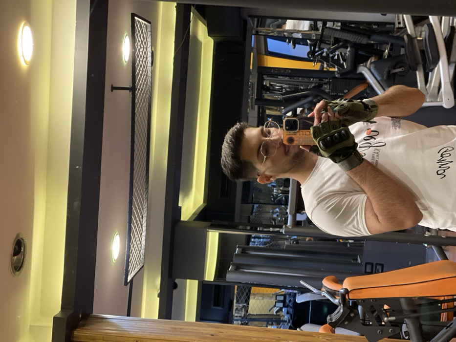 - "A man in a white t-shirt and green gloves takes a mirror selfie in a gym" by FM-jBMJn1, licensed under CC BY 4.0