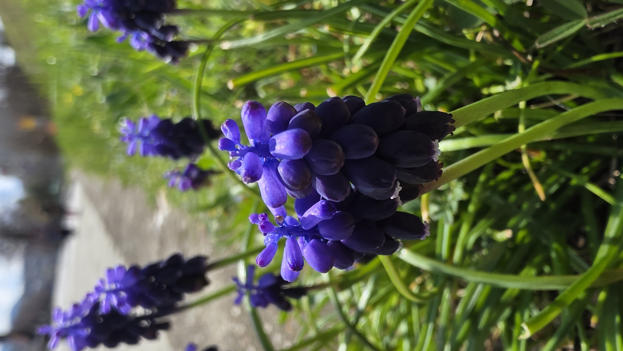 - "The image displays a close-up of dark purple Muscari (grape hyacinth) flowers in Blagoevgrad, Bulgaria, under bright daylight" by FM-etvNA2, licensed under CC BY 4.0