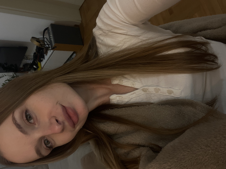 - "A young woman with fair skin and long, light brown hair rests on a soft, tan blanket" by FM-AA15p2, licensed under CC BY 4.0