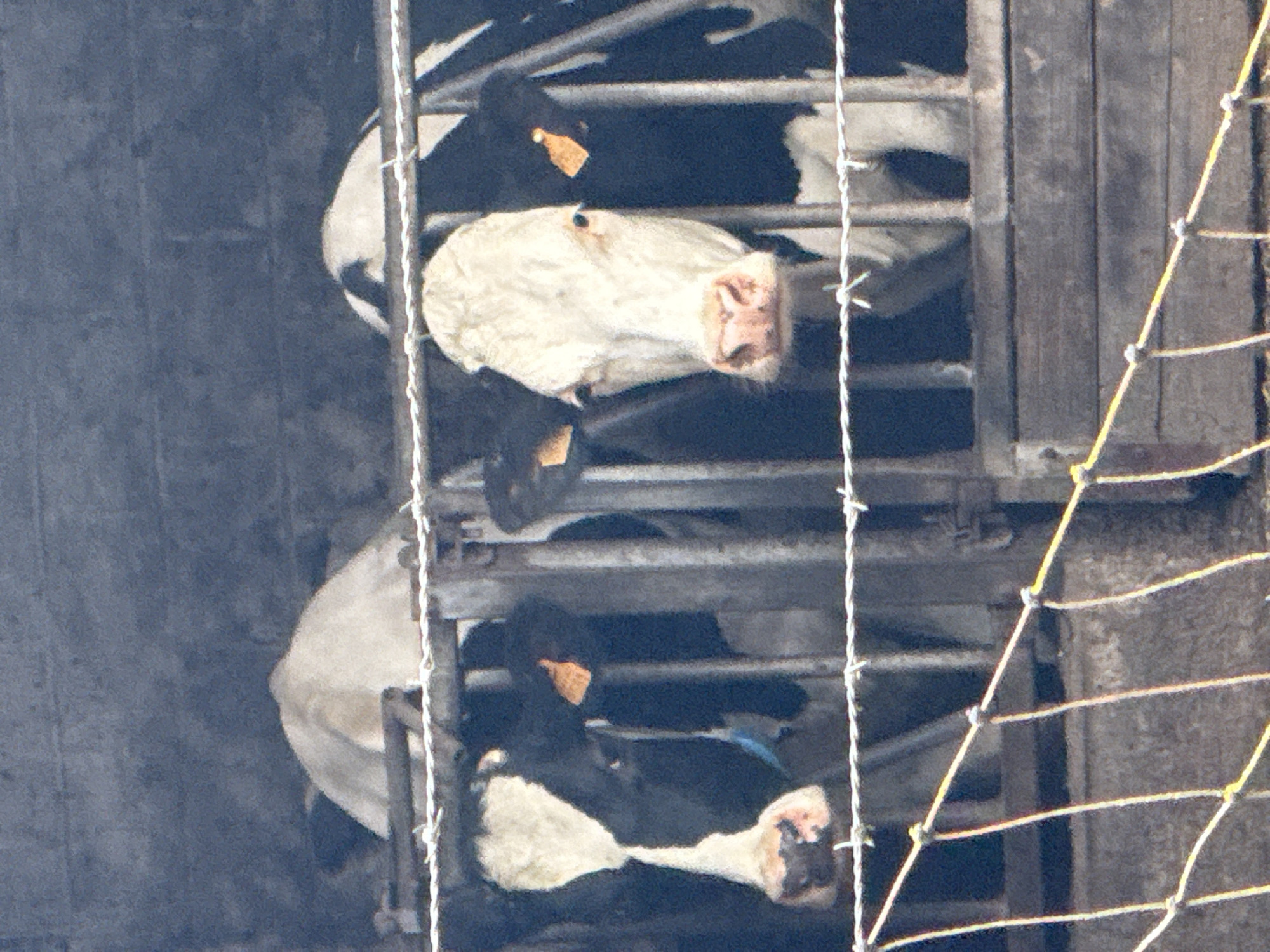 - "three Holstein Friesian cows confined within a fenced or gated area, possibly a farm or agricultural building" by FM-H0rwJ2, licensed under CC BY 4.0