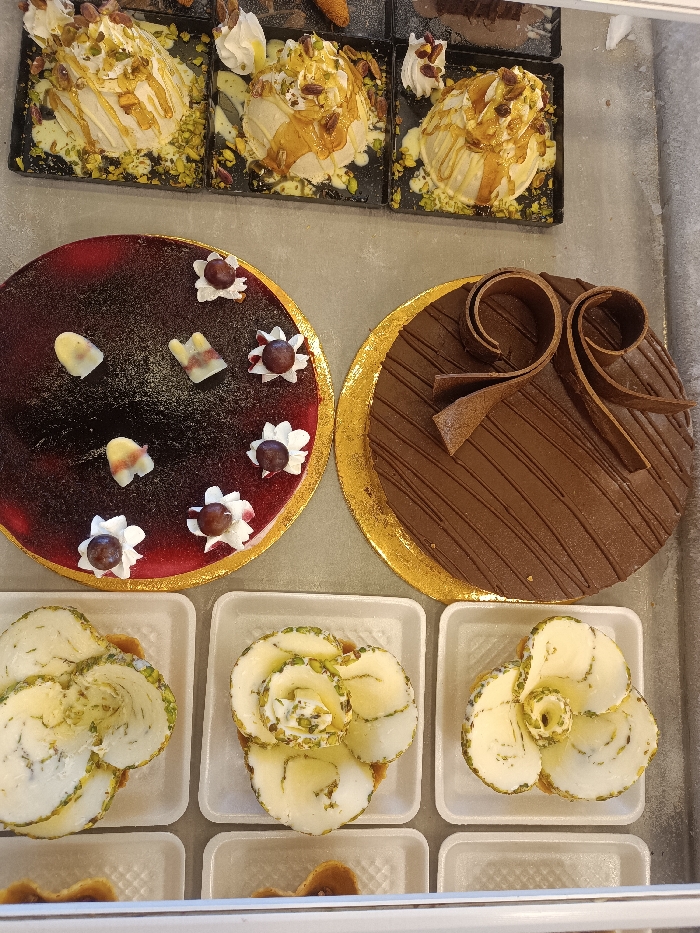 - "This image depicts a display of various desserts and pastries in what appears to be a bakery or sweet shop in Dahiyat Qudsaiya, Syria" by FM-Dj8kx1, licensed under CC BY 4.0