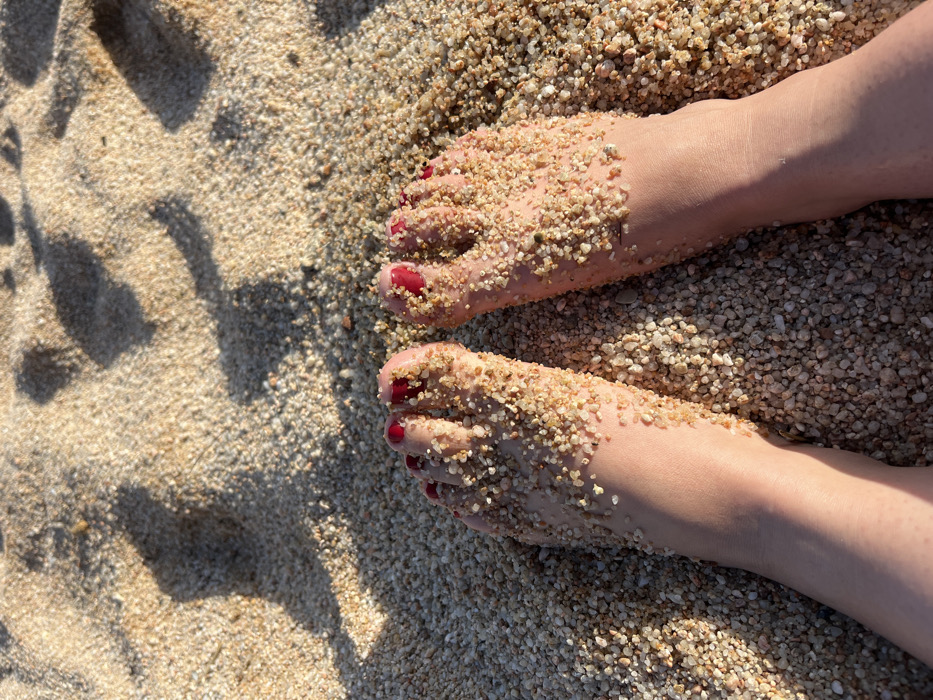 - "The image displays a close-up, top-down perspective of two bare human feet resting on a sandy and pebbly beach surface in Lloret de Mar, Spain" by FM-4GKkh1, licensed under CC BY 4.0