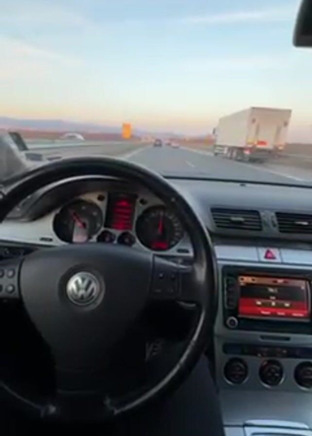 person driving a Volkswagen car on a highway