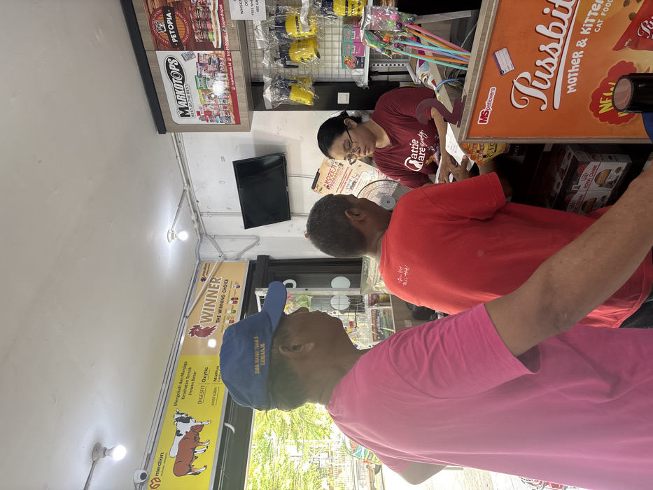 - "A shop counter setting featuring three individuals: a cashier in a maroon shirt, a customer in a red shirt, and another customer in a pink shirt wearing a blue cap" by FM-pZJkE3, licensed under CC BY 4.0