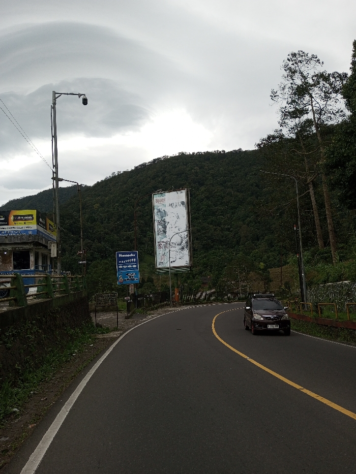 - "The scene depicts a curved asphalt road traversing a densely forested, mountainous region under an overcast sky with visible wave-like cloud formations in the upper left" by FM-OUF5o1, licensed under CC BY 4.0
