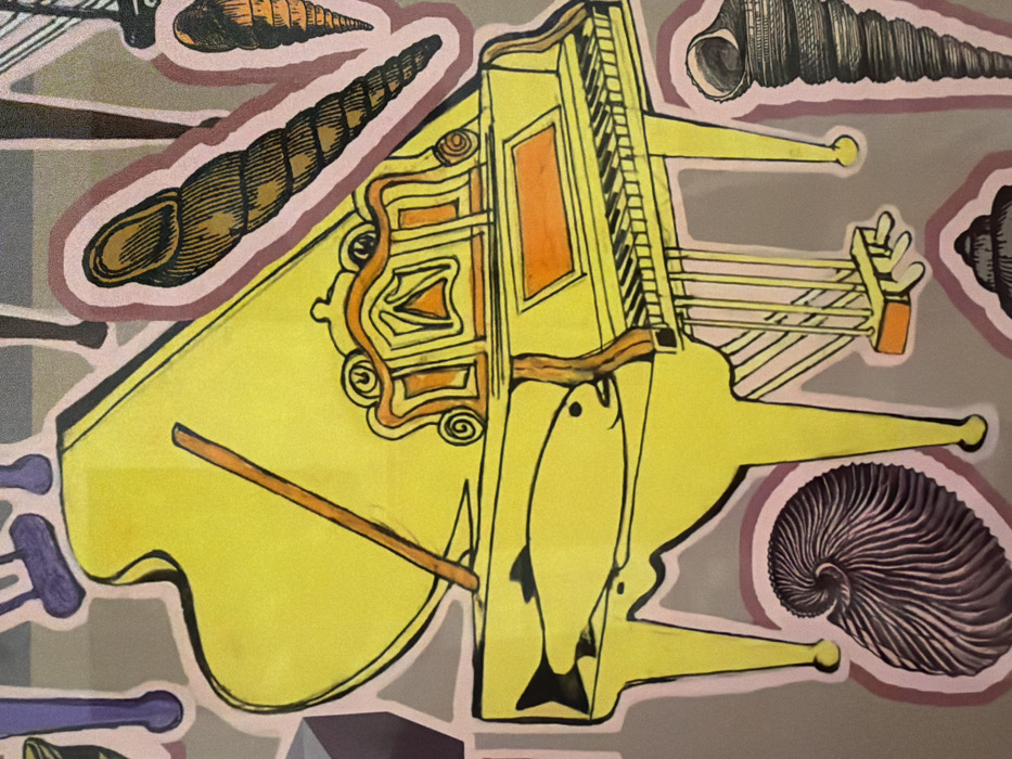 - "The image displays a collage or illustration featuring a bright yellow grand piano, outlined in black and bordered in pink, positioned centrally against a neutral grey background" by FM-1EFY73, licensed under CC BY 4.0