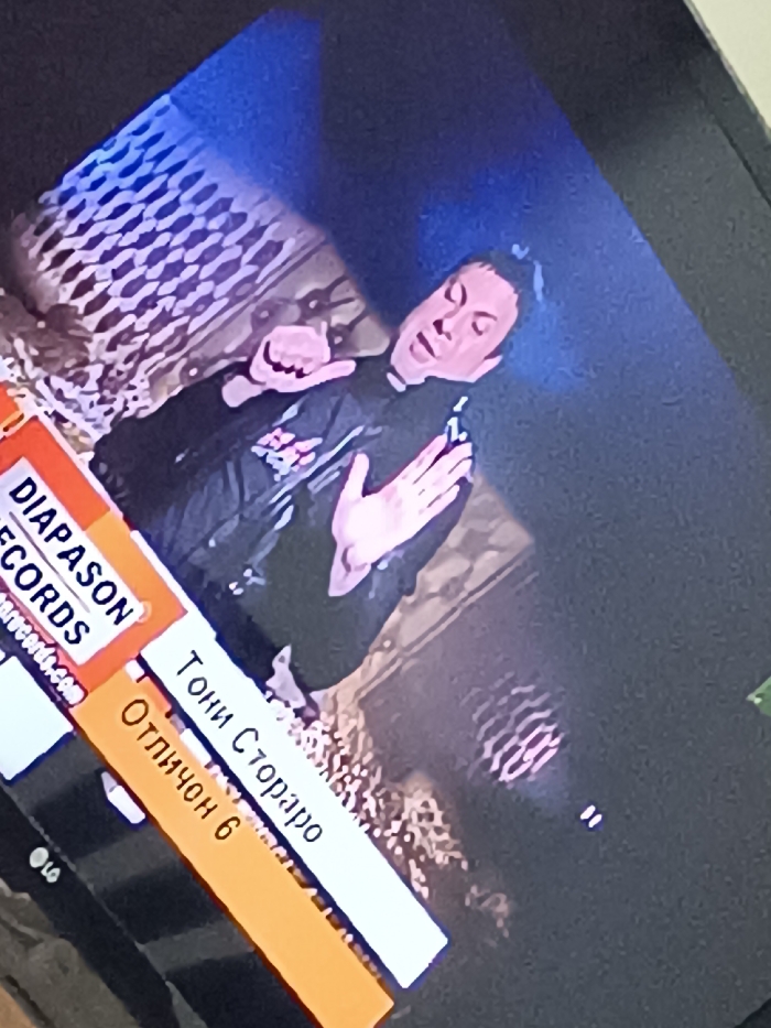 - "The image displays a photograph of a television screen, viewed at an angle, depicting a male individual identified as Toni Storaro during a broadcast" by FM-iHa0r2, licensed under CC BY 4.0